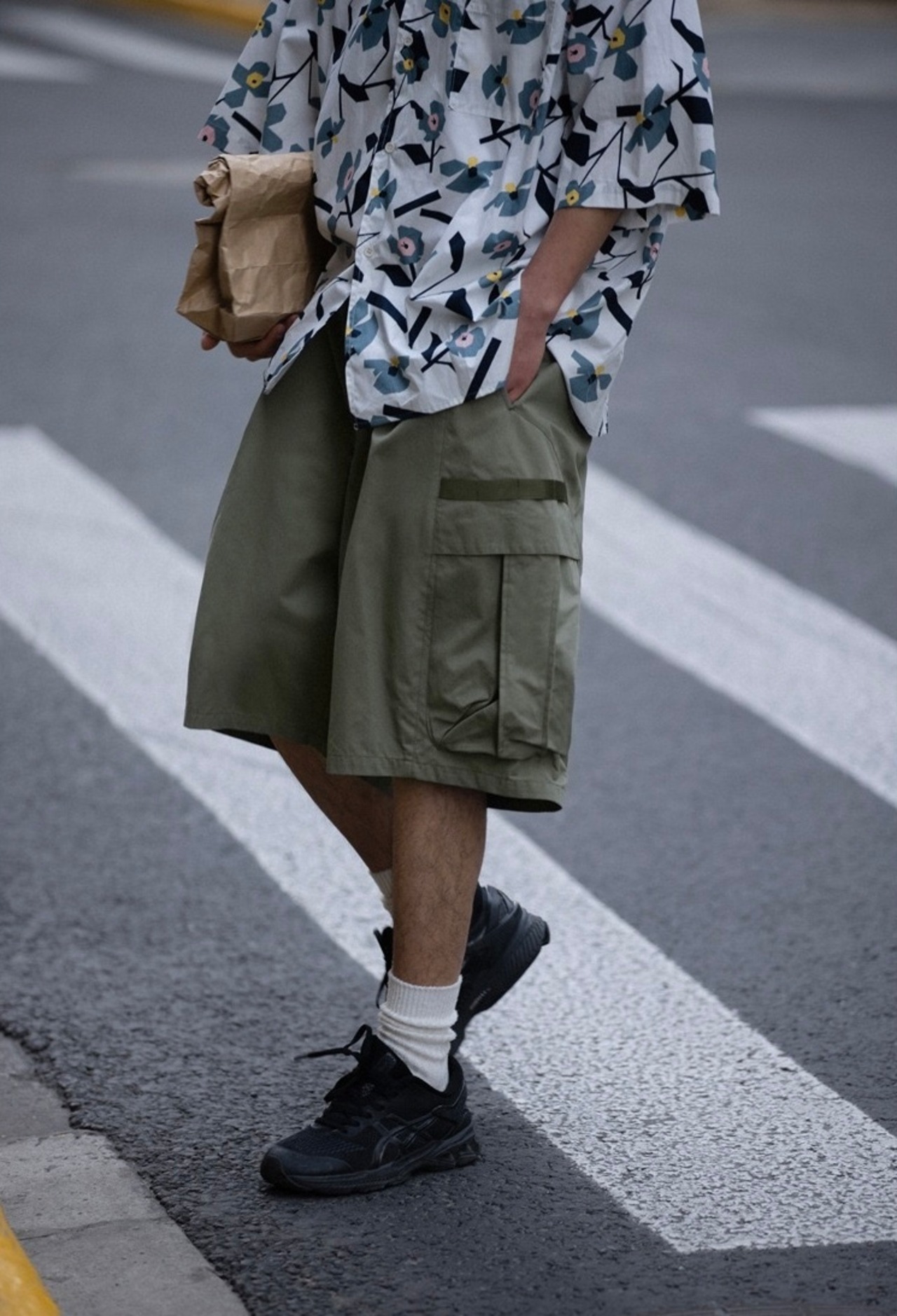 大きめポケットが特徴的なカーゴデザインのハーフパンツ。ゆったりとしたシルエットでカジュアルスタイルに最適です。