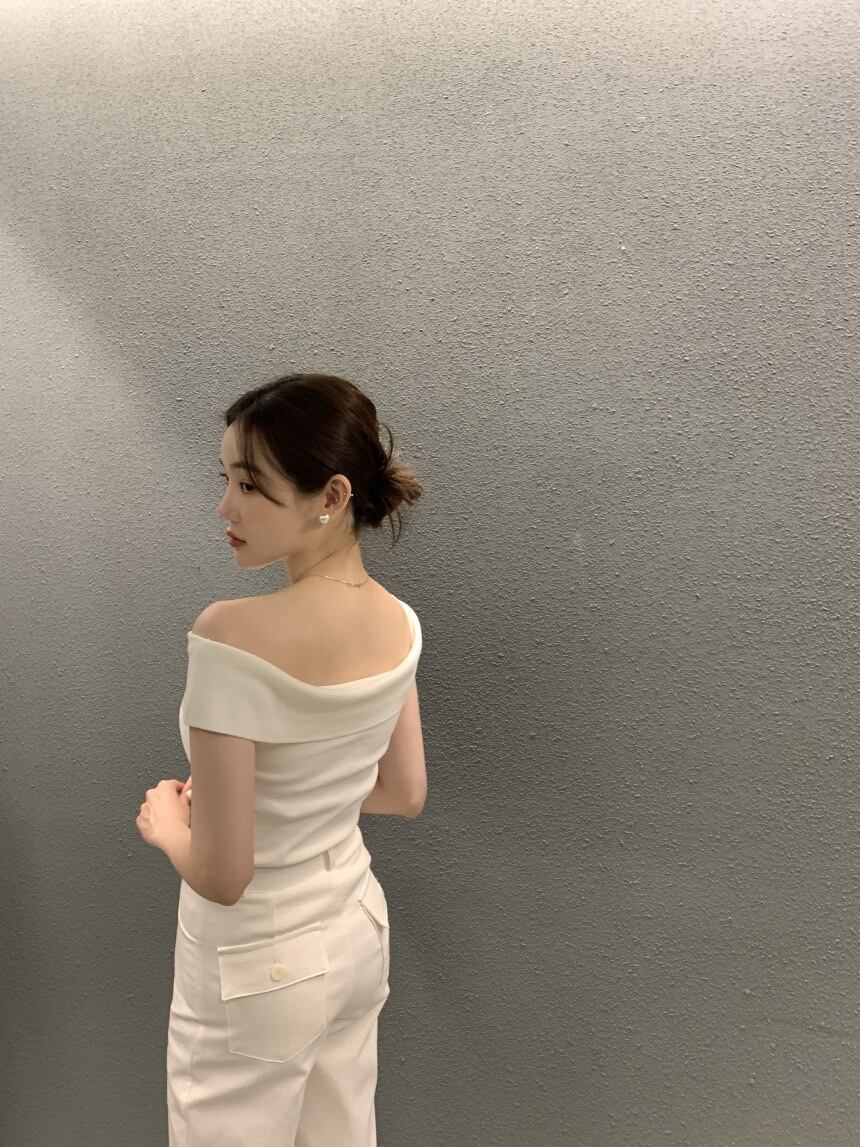 【オフショルダーニットタンクトップ】 デコルテを美しく魅せるオフショルダーシルエットが上品な一枚。 しっかりとしたリブニット素材で、身体にほどよくフィットしながらも動きやすく、着心地も◎ シンプルながらも女性らしさを引き立てるデザインで、パンツにもスカートにも相性抜群。 アクセサリーやヘアアレンジ次第で、デイリーからお呼ばれまで幅広く活躍してくれる万能トップスです。